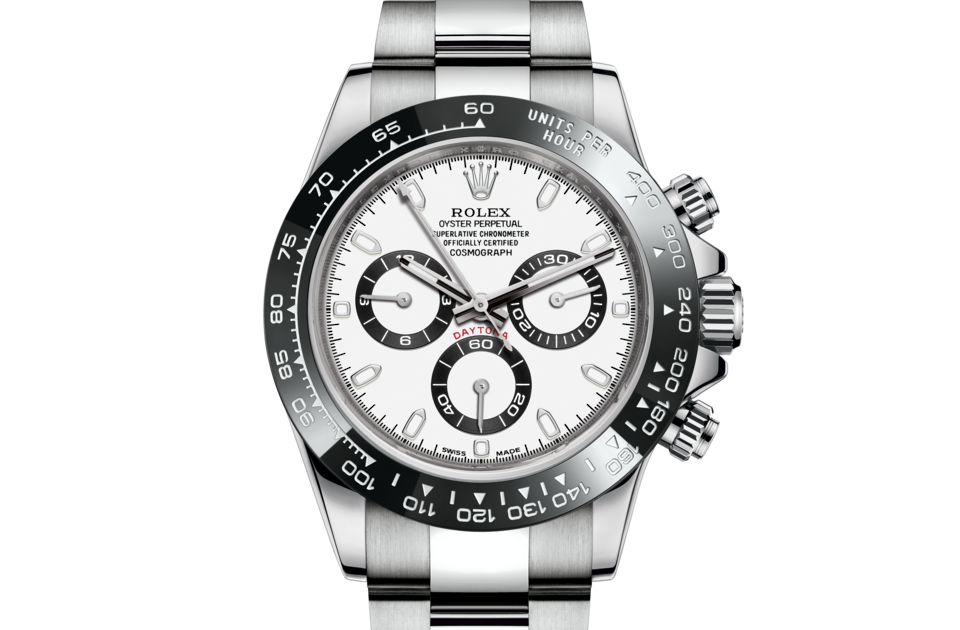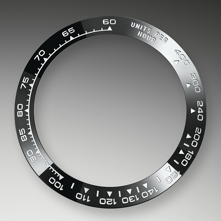 A key part of the model’s identity is the bezel engraved with a tachymetric scale for measuring average speeds of up to 400 miles or kilometers per hour. Blending of high technology with sleek aesthetics, the black bezel is reminiscent of the 1965 model that was fitted with a black Plexiglas bezel insert.
