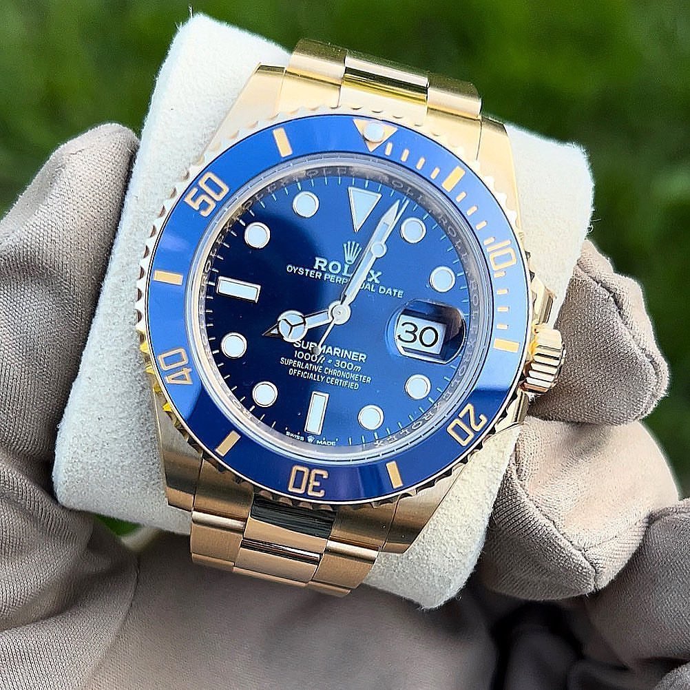 Oyster Perpetual Submariner Calendar watch in gold and Oystersteel models, with a royal blue dial and extra-large luminous hour markers.